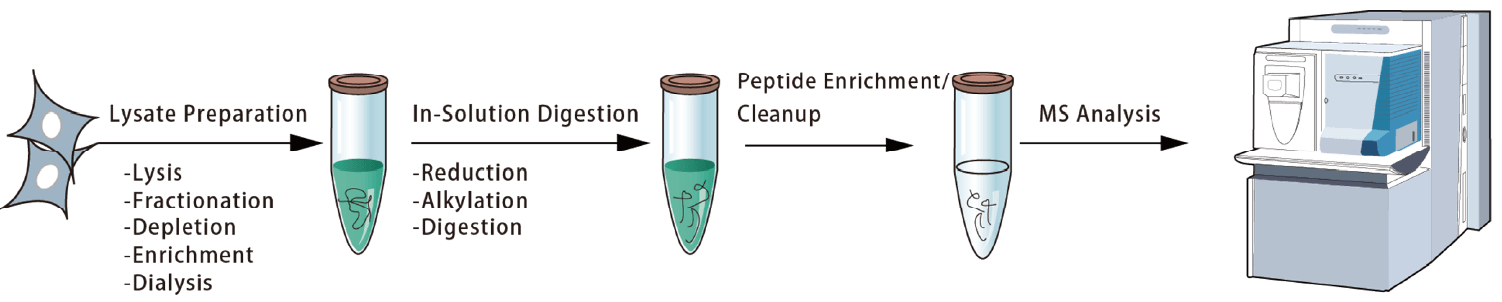 适用于细胞裂解液、免疫沉淀洗脱液以及缓冲液中的蛋白混合物。相较凝胶内酶解, 溶液法流程更简洁、肽段损失更少, 从而在更短时间内获得更深的蛋白组覆盖。